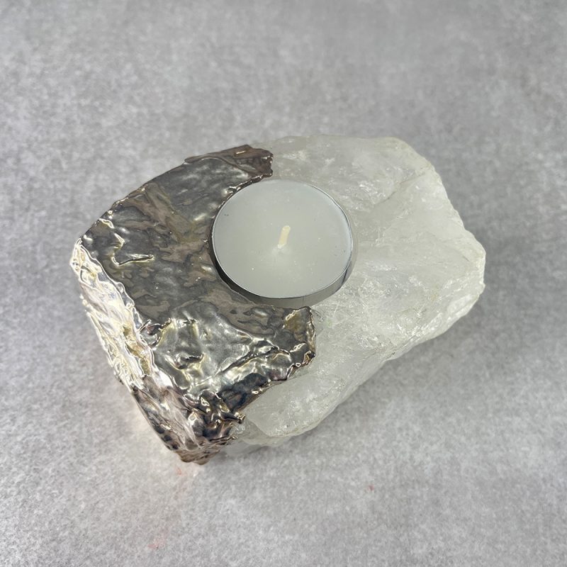 Portavela Cuarzo Claro con baño plateado